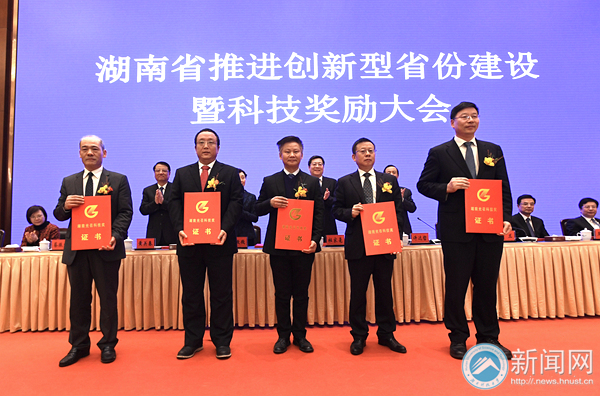 On February 27th, a conference on Promoting Innovative Construction and Science and Technology Award was held in Changsha. Wan Buyan and Wang Weijun, professors of HNUST were honored the 11th Hunan Guangzhao Science and Technology Award and the first prize of Provincial Science and Technology Progress Award respectively.