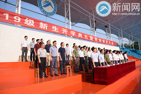HNUST’s opening ceremony for freshmen and military training mobilization conference, was held in the Athletic Field (2) on September 9th, presided by Vice President Hu Shiqi and Vice President Shi Shiliang respectively. President Zhu Chuanqu addressed the ceremony.