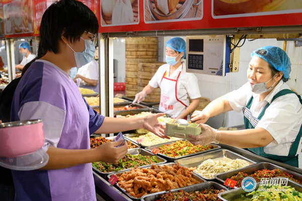 After the flag-raising ceremony, students went to the canteens, where hearty breakfasts were all prepared. The first breakfast of the new semester stored energy for them to start the first day of school life. At the same time, in order to better prevent and control the epidemic, tips such as “Stagger Meal Hours” and “Wear Masks” could be seen everywhere.