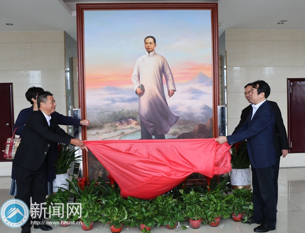 On Oct. 29th, the unveiling ceremony of The Knowledge Pursuit of Teenage Mao Zedong, an oil painting created by a famous oil painter Wang Beinan as a gift for the 70th anniversary of the founding of the PRC and his alma mater HNUST, was held in the Lide building. President Zhu Chuanqu and Vice President Hu Shiqi unveiled the painting.