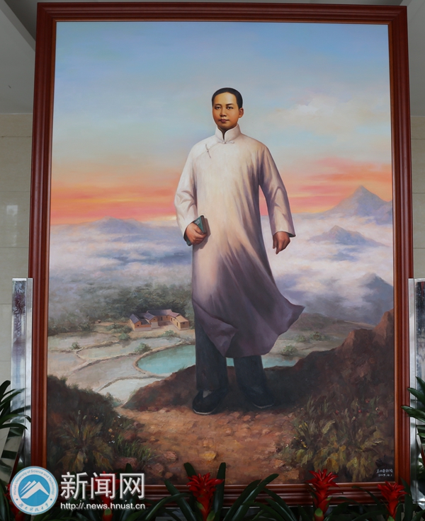 When it came to his creative inspiration, Wang said that since he was very young, his parents have taught him that Chairman Mao was such a saviour who led the Communist Party to establish the PRC. With his deep reverence for Chairman Mao, Wang completed the painting within three months. Taking this opportunity, he wishes the motherland and HNUST greater prosperity.