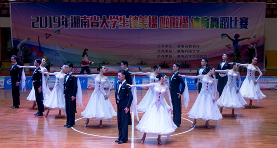 On November 17th, the 2019 Hunan College Sports Dance Competition was held in Gymnasium(1), including the finals and prize-giving ceremonies of Women’s Single Latin, Fitness Ballroom Dancing and Group Dancing, which were held in the morning, the afternoon and the evening respectively.